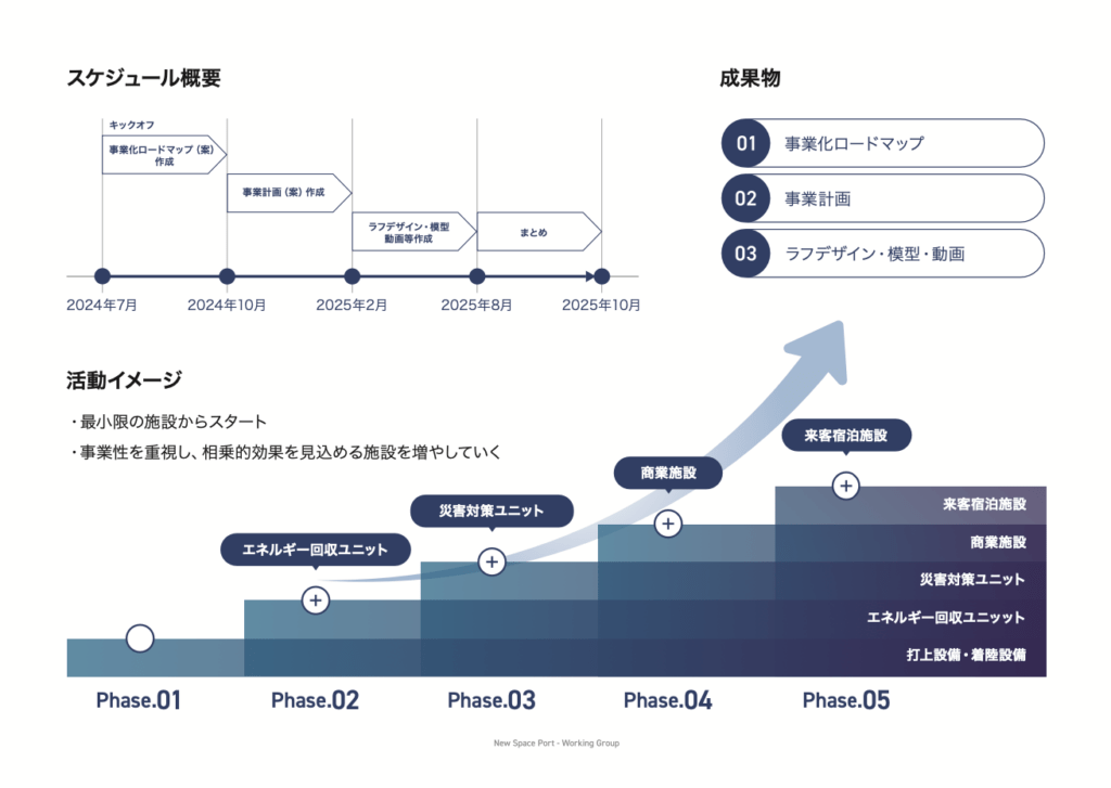 THE NSP-WG WILL EXPAND THE SCOPE OF ITS STUDIES NOT ONLY ON LAND BUT ALSO AT SEA, AND PLAN A NEW AND HIGHLY PRACTICAL SPACE TRANSPORTATION BASE THAT HAS NEVER BEEN SEEN BEFORE.