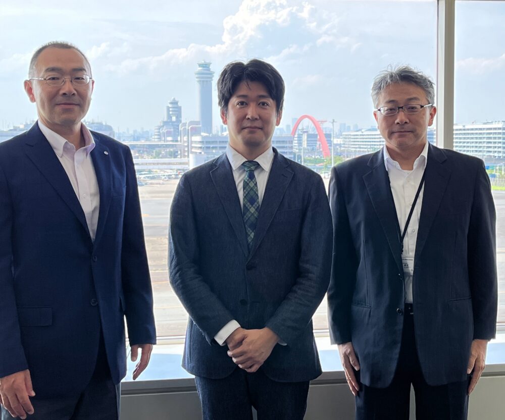 JALエンジニアリング田村社長(写真左)、清水常務(写真右)、将来宇宙輸送システム株式会社畑田CEO(写真中央)