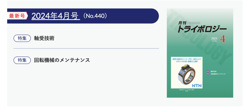 この度、当社の主席研究員である庄山 直芳が「月刊トライボロジー4月号」(「軸受技術」特集)に寄稿しました。
