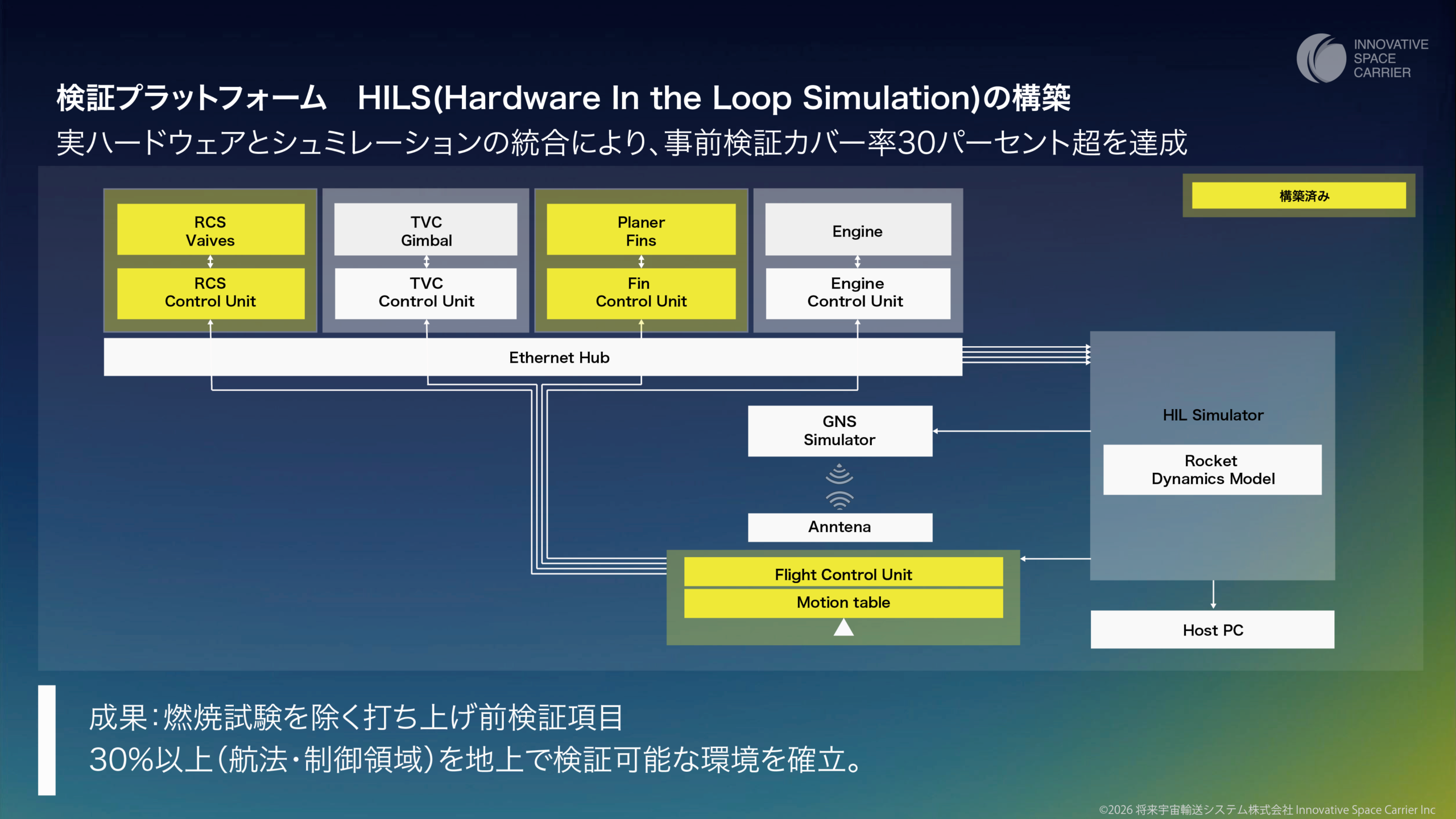2026年度は、新たにエンジンおよびTVC(推力方向制御)の開発支援プラットフォームを構築し、これらを統合することでシミュレーションによる検証カバー率を80%程度まで引き上げる計画です。